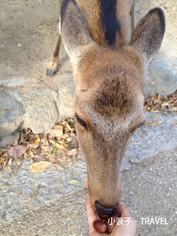 本來想買鹿仙貝餵鹿, 旁邊有位大叔把他一大袋的栗子不停拋給小鹿吃, 然後善心的送了我一堆讓我也試著餵。